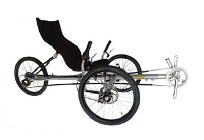 The Terrain models are available in either a 3 x 20” Wheel or a 3x 26” wheel model. Terrain models feature a powder coated , foldable 4130 Chromoly frame. Terrain models will come equipped with Trident's signature mesh seat with 4 adjustable angles and 3 height positions. X-Seam ranges have also been increased – the Terrain will accommodate riders with X-Seams from 34 ¼” to 47 ¼” (900mm-1200mm ). Terrain's can also accommodate even larger X-Seams with an XL boom. Rounding out the features are Avid BB5 disc brakes with locking parking brake levers and a 7 speed Shimano drivetrain with a twist shifter.